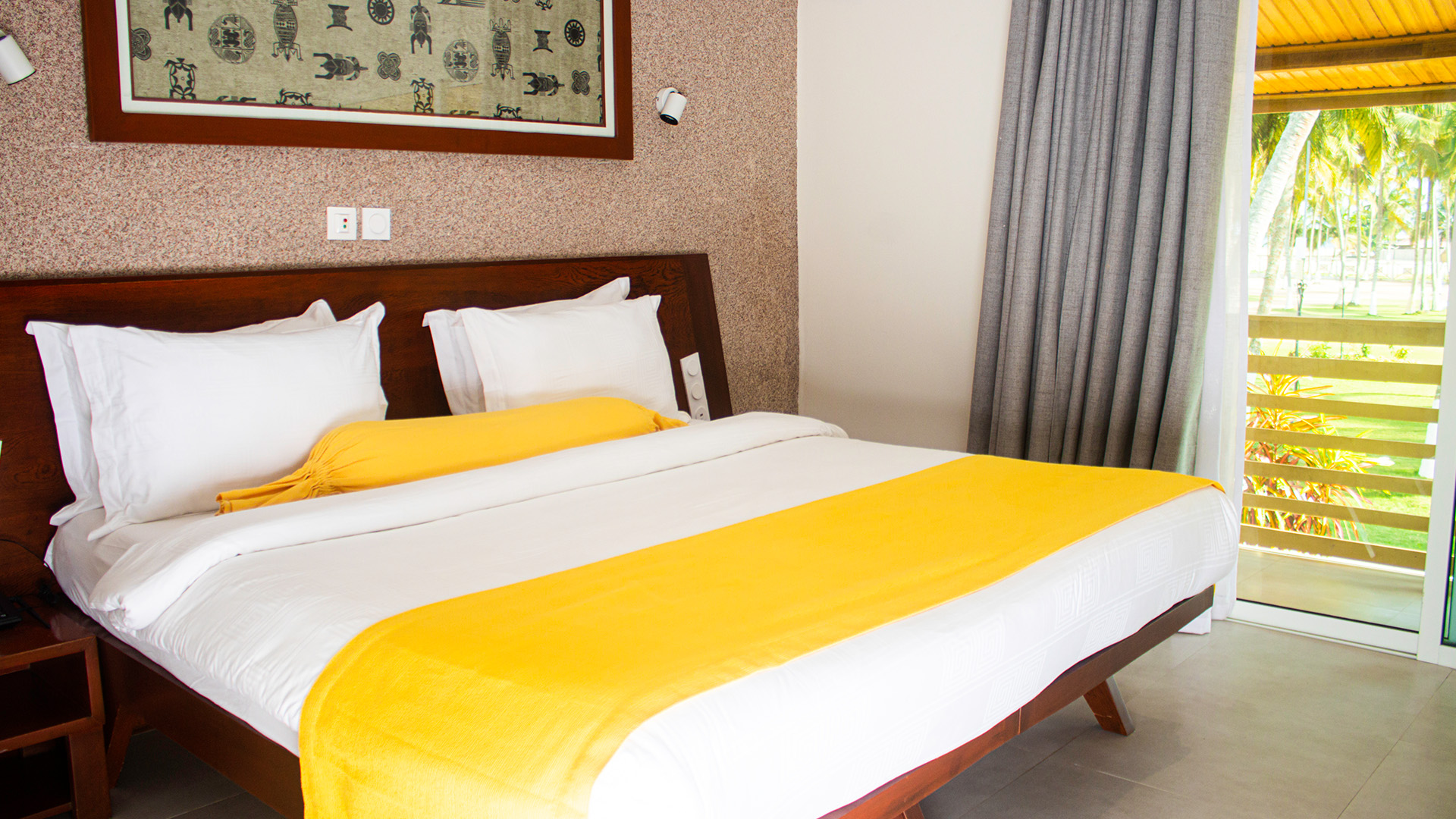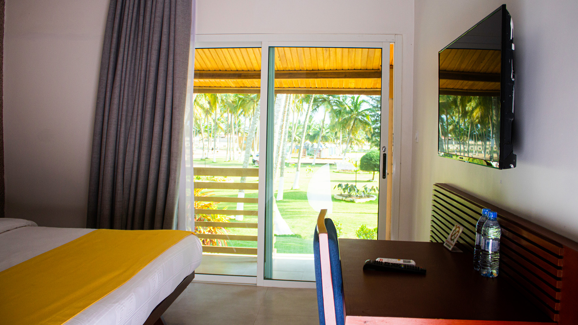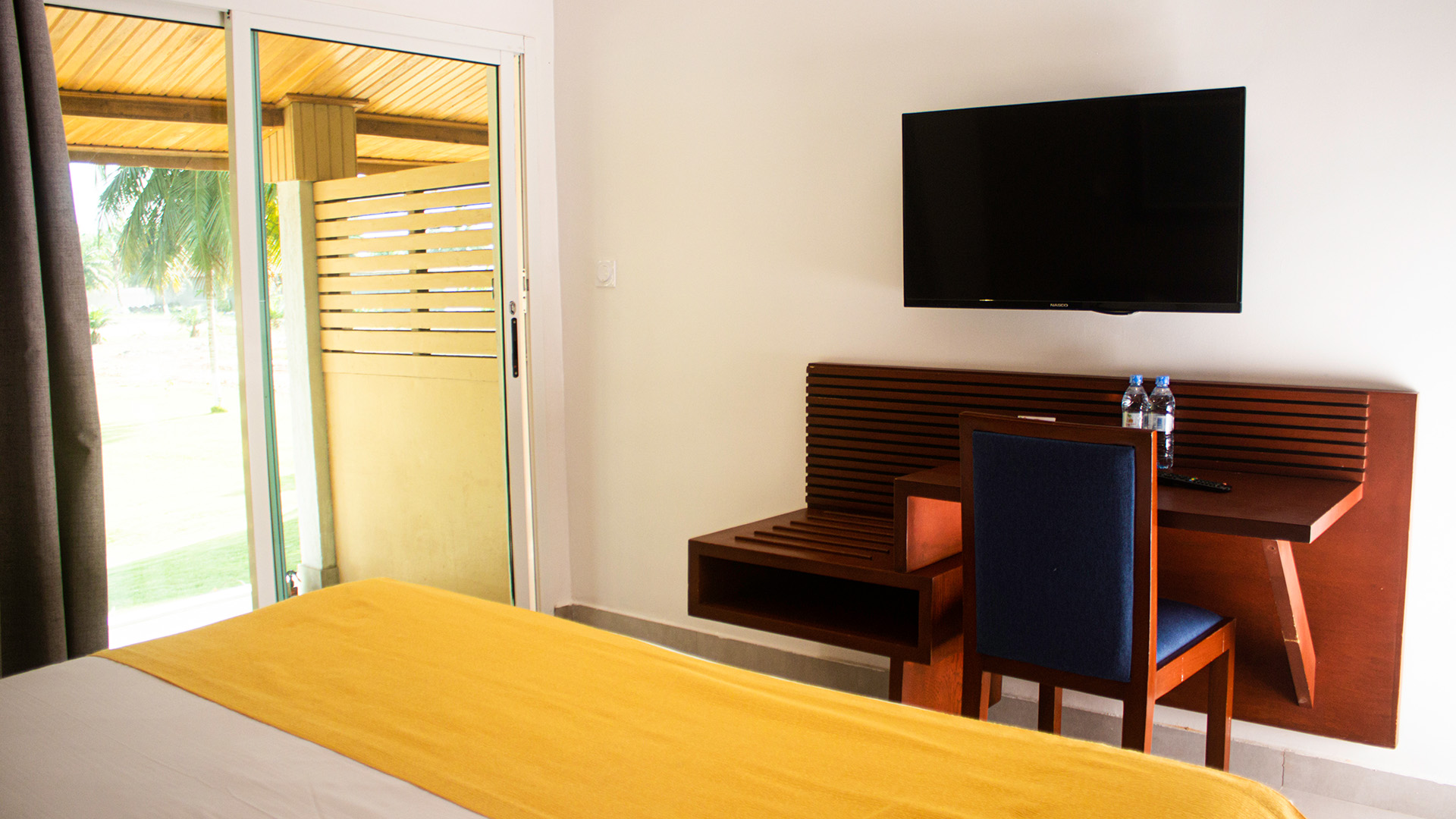 Chambre classique supérieure, elle est tout aussi chaleureuse et bien équipée avec une vue panoramique sur le jardin, et sur la plage de l'hôtel.